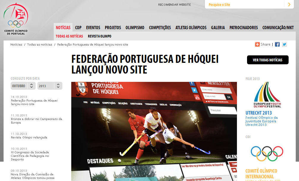 A nova plataforma de comunicação da FPH está em destaque no website do Comité Olímpico de Portugal.