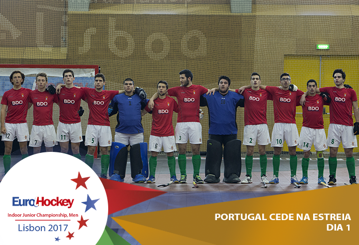 Portugal entrou nervoso na estreia no EuroHockey Lisboa 2017, concedendo dois cantos curtos nos primeiros minutos, sendo um deles convertido no primeiro golo da partida.